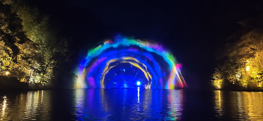 入夜,黨支部一行來(lái)到本次文旅最精彩的項(xiàng)目:“夜游九龍?zhí)?rdquo;。以“夜游九龍?zhí)?,靜享夜的美”為主題的“行進(jìn)式”水上峽谷夜游景區(qū),利用現(xiàn)代化聲光技術(shù)與景區(qū)自然美景有機(jī)融合,讓您充分感受“詩(shī)意山水,光影幻境”。聽(tīng)蛙唱蟲(chóng)奏,觀月下仙境,月光映水,水波映月,加上臨水棧道邊笛聲陣陣......讓您真切的領(lǐng)會(huì)空靈、幽靜、夢(mèng)幻的別樣意境。一路的聲光風(fēng)景讓人目不暇接,如果不是身臨其境,絕對(duì)感受不到那光影與大自然結(jié)合產(chǎn)生的絕妙意境。