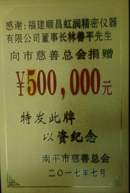 2017年7月28日,南平市慈善捐贈(zèng)大會(huì)暨市慈善總會(huì)換屆會(huì)議在南平市委舉行,福建順昌虹潤董事長林善平再次當(dāng)選為南平市慈善總會(huì)第三屆理事會(huì)副會(huì)長,這也是林善平董事長第三次當(dāng)選此職。同時(shí),在本次慈善捐贈(zèng)大會(huì)上,他再次向市慈善總會(huì)捐款50萬元。他表示,他還將一如既往,繼續(xù)加大對(duì)社會(huì)公益事業(yè)的支持力度,積極投身公益和慈善事業(yè),為南平市的慈善事業(yè)作出更大的貢獻(xiàn)。目前,林善平董事長各項(xiàng)公益捐款累計(jì)已達(dá)1000余萬元。