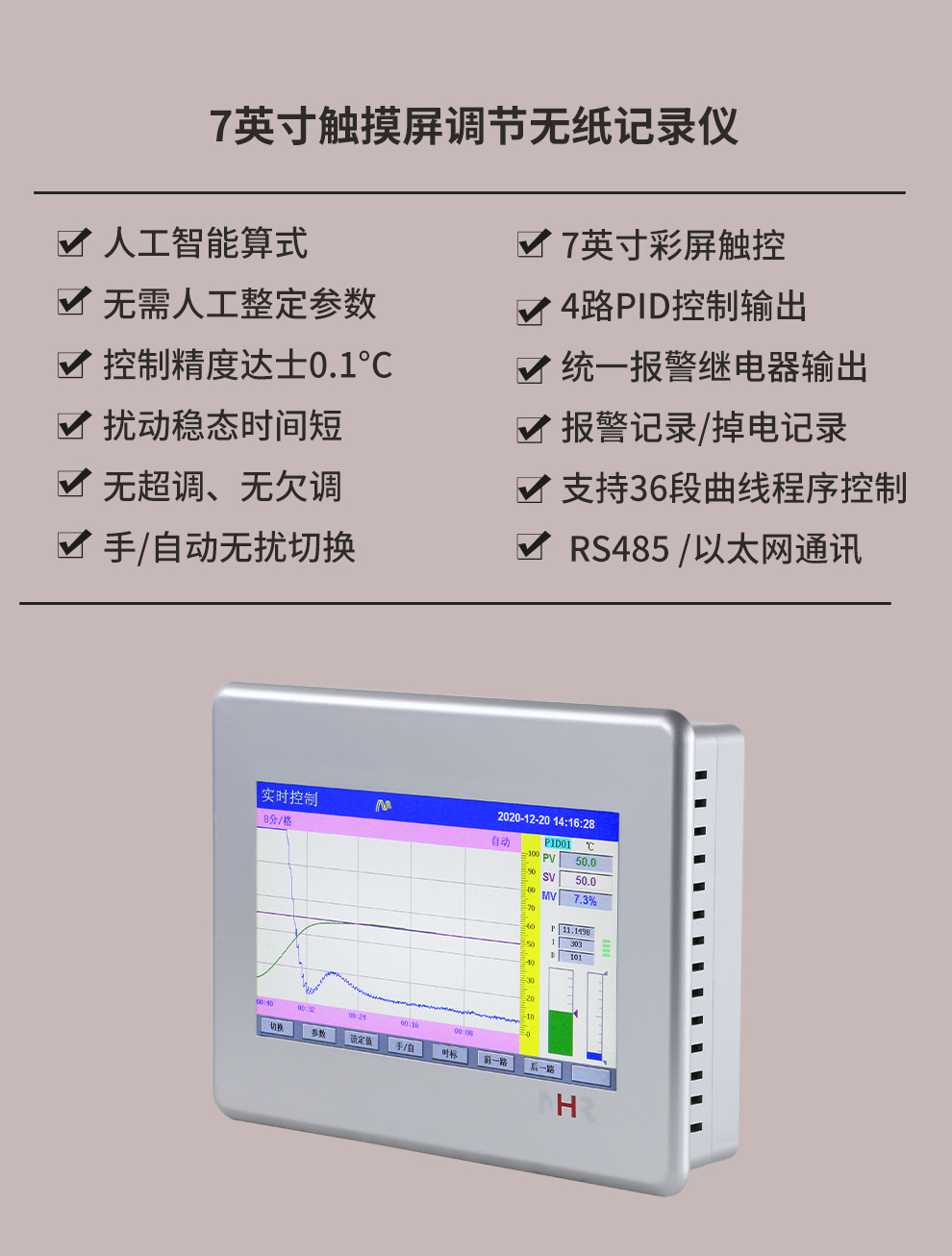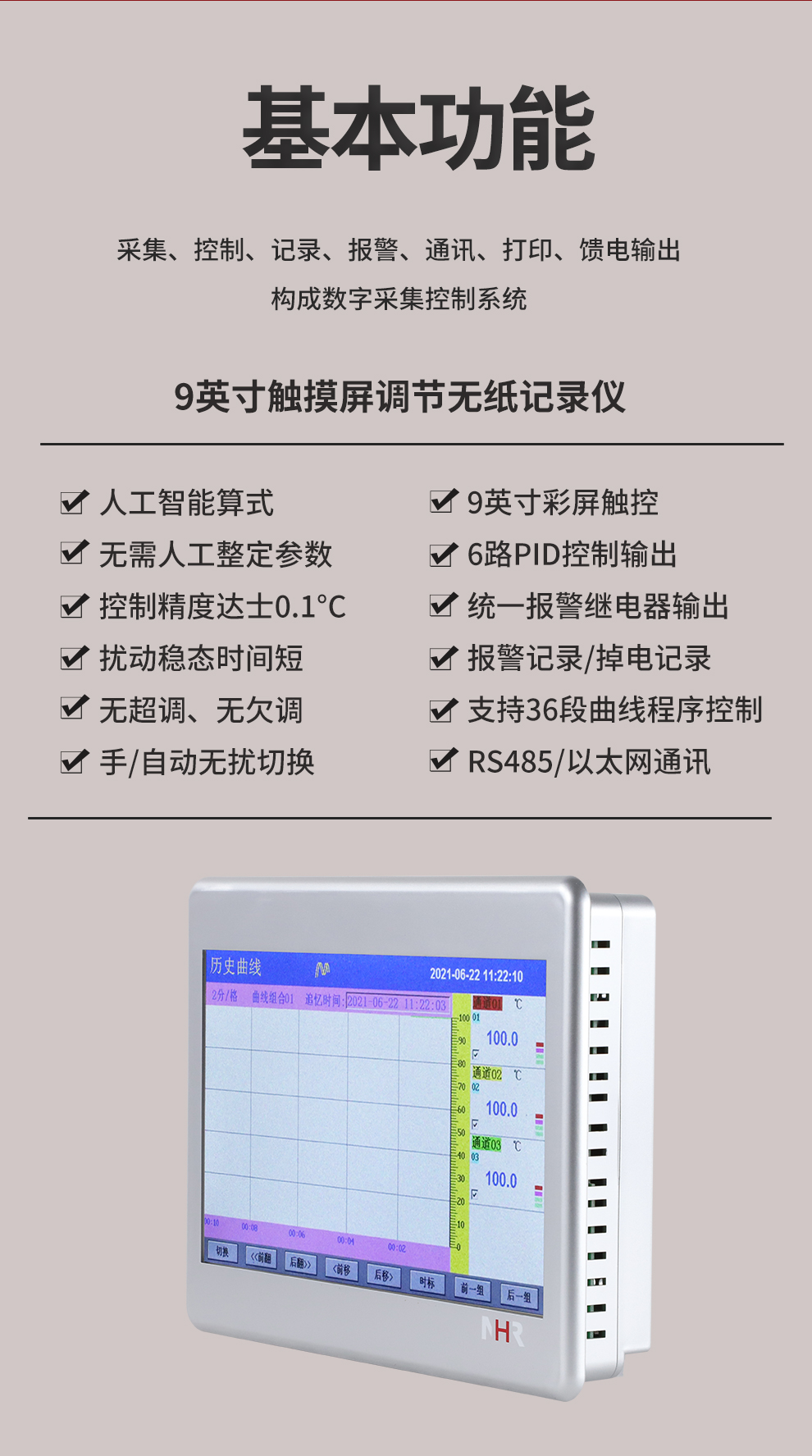 虹潤公司是專業(yè)生產(chǎn)無紙記錄儀的國家專精特新“小巨人”企業(yè)。生產(chǎn)的觸摸屏調(diào)節(jié)無紙記錄儀,具有觸摸大屏顯示,真正人工智能算式,無需人工整定參數(shù),控制精度達士0.1°C,數(shù)據(jù)記錄與轉(zhuǎn)存, RS485/以太網(wǎng)通訊,5/7/9英寸可選等特點。產(chǎn)品獲得智能化控制器、人工智能調(diào)節(jié)器及調(diào)節(jié)方法、模糊PID控制儀及控制方法、平板無紙記錄儀、巡回檢測顯示方法及裝置等5項國家發(fā)明專利,主持起草物聯(lián)網(wǎng)智能記錄儀表通用技術(shù)條件、物聯(lián)網(wǎng)智能溫度儀表通用技術(shù)條件、工業(yè)過程測量和控制系統(tǒng)用智能調(diào)節(jié)器等3項國家標(biāo)準(zhǔn),通信系統(tǒng)多通道數(shù)據(jù)采集控制終端規(guī)范軍用標(biāo)準(zhǔn),以及空間數(shù)據(jù)與信息數(shù)據(jù)傳輸系統(tǒng)等2項航天標(biāo)準(zhǔn),參與國際5G標(biāo)準(zhǔn)制定,取得觸摸屏彩色調(diào)節(jié)無紙記錄儀等3項相關(guān)軟件著作權(quán)。產(chǎn)品廣泛應(yīng)用于電力、石化、冶金、化工、食品、制藥、熱處理、水處理、機械配套等諸多領(lǐng)域。