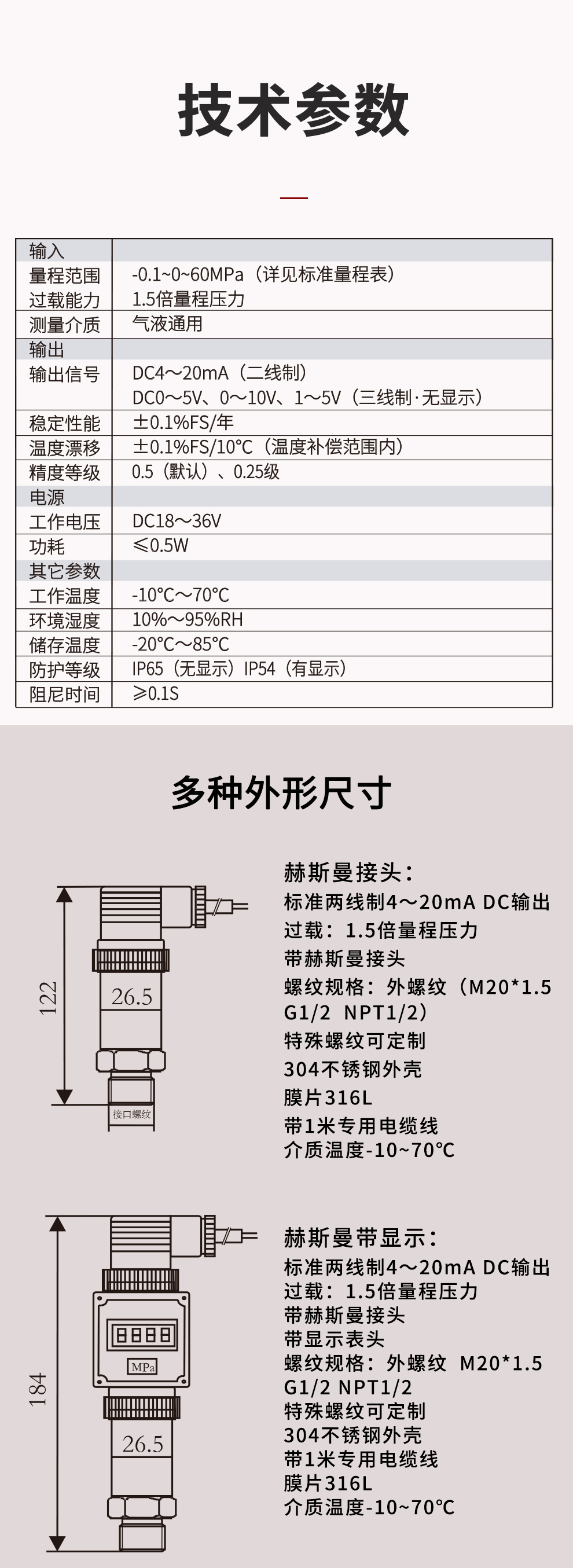 虹潤公司是專業(yè)生產(chǎn)壓力變送器的國家專精特新“小巨人”企業(yè),生產(chǎn)的小巧型壓力變送器,具有采用進(jìn)口芯體,量程范圍寬,抗沖擊抗震動,多種螺紋接口,性能穩(wěn)定等特點。產(chǎn)品獲得一種數(shù)字顯示低功耗壓力表、一種信號發(fā)生器裝置等2項國家發(fā)明專利,主持起草工業(yè)過程控制系統(tǒng)用模擬輸入兩位或多位輸出儀表、工業(yè)過程測量和控制系統(tǒng)用壓力/差壓變送器等2項國家標(biāo)準(zhǔn),通信系統(tǒng)多通道數(shù)據(jù)采集控制終端規(guī)范軍用標(biāo)準(zhǔn),以及現(xiàn)場設(shè)備集成等5項智能制造國家標(biāo)準(zhǔn),參與國際5G標(biāo)準(zhǔn)制定,取得數(shù)顯壓力表等2項相關(guān)軟件著作權(quán)。產(chǎn)品廣泛應(yīng)用于化工、食品、制藥、電力、設(shè)備配套、供暖、水處理、樓宇等行業(yè),需精準(zhǔn)測量流體壓力的現(xiàn)場。