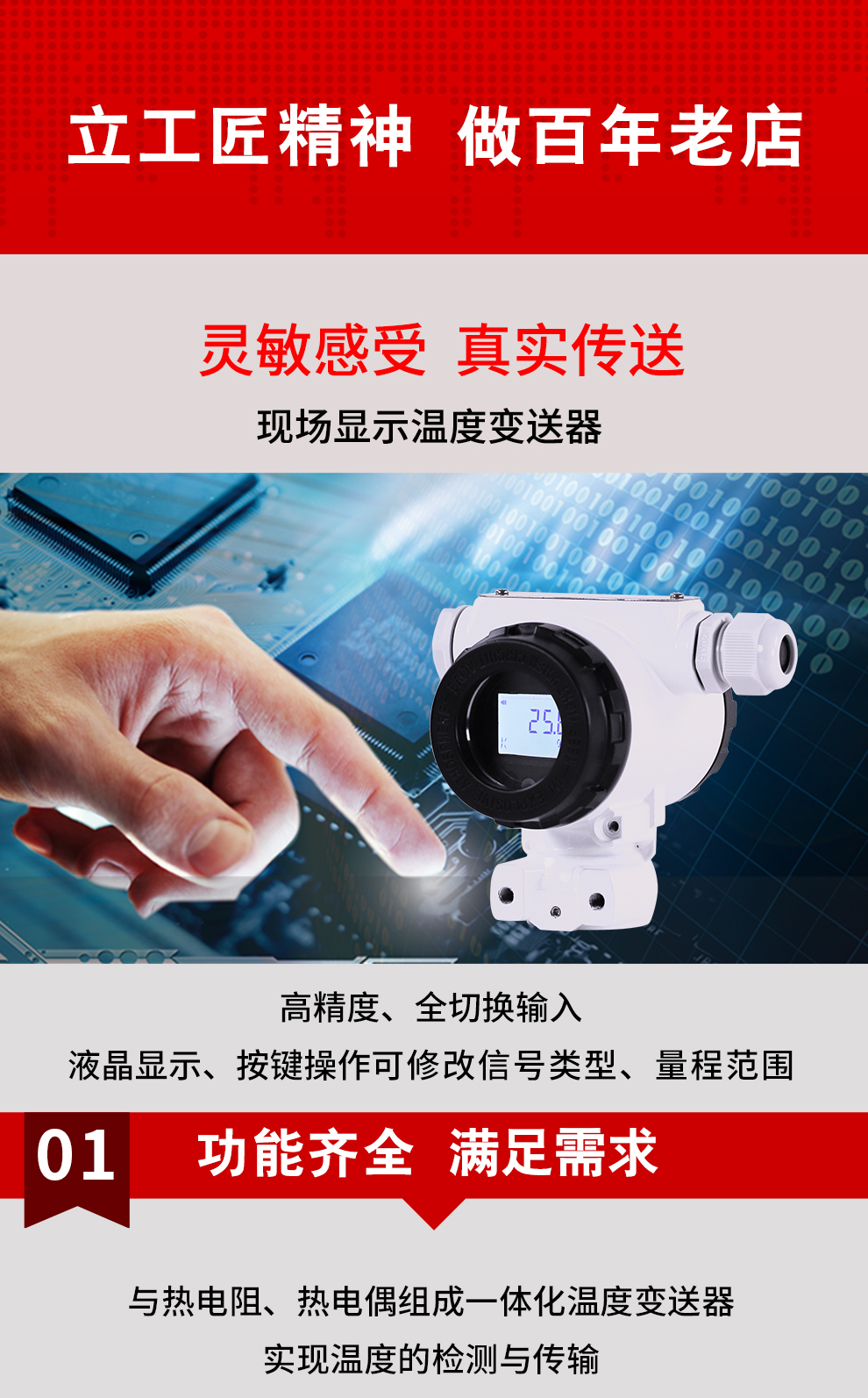 虹潤公司是專業(yè)生產(chǎn)溫度變送器的國家專精特新“小巨人”企業(yè)。生產(chǎn)的現(xiàn)場顯示溫度變送器,具有可修改輸入信號類型,測量精度高,響應時間快,IP65防護等級等特點。該產(chǎn)品不僅通過德國萊茵 CE 認證與 SIL 功能安全認證,還獲得具備減震抗干擾能力的溫度變送器、信號隔離器、一種二端子模塊、無源信號隔離器等3項國家發(fā)明專利。主持起草物聯(lián)網(wǎng)智能溫度儀表、現(xiàn)場設備工具(FDT)接口規(guī)范、工業(yè)過程測量和控制系統(tǒng)用溫度變送器等3項國家標準,以及通信系統(tǒng)多通道數(shù)據(jù)采集控制終端規(guī)范軍用標準。參與國際5G標準制定,取得高精度溫度變送器等3項相關(guān)軟件著作權(quán)。產(chǎn)品廣泛應用于石油、化工、電力、冶金、制藥、食品、水處理等各種工業(yè)領(lǐng)域。
