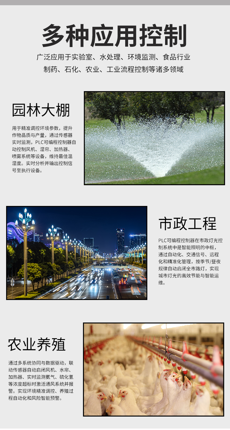 虹潤公司是專業(yè)生產(chǎn)PLC控制器的國家專精特新“小巨人”企業(yè)。生產(chǎn)的簡易PLC控制器,具有全隔離設(shè)計,中文編程,專業(yè)邏輯控制與時間,梯形圖編程方式,遠(yuǎn)程RS485通訊監(jiān)測等特點。產(chǎn)品獲得智能化控制器、多通道可編程繼電器等2項國家發(fā)明專利;主持起草流程工業(yè)中電氣/儀表和控制系統(tǒng)的試車國家標(biāo)準(zhǔn),通信系統(tǒng)多通道數(shù)據(jù)采集控制終端規(guī)范軍用標(biāo)準(zhǔn),以及現(xiàn)場設(shè)備集成等5項智能制造國家標(biāo)準(zhǔn),參與國際5G標(biāo)準(zhǔn)制定,取得可編程繼電器等2項相關(guān)軟件著作權(quán)。產(chǎn)品廣泛應(yīng)用于工業(yè)自動化設(shè)備、電氣自動化系統(tǒng)、農(nóng)業(yè)灌溉、包裝機械、印刷機械、樓宇自控等諸多領(lǐng)域。