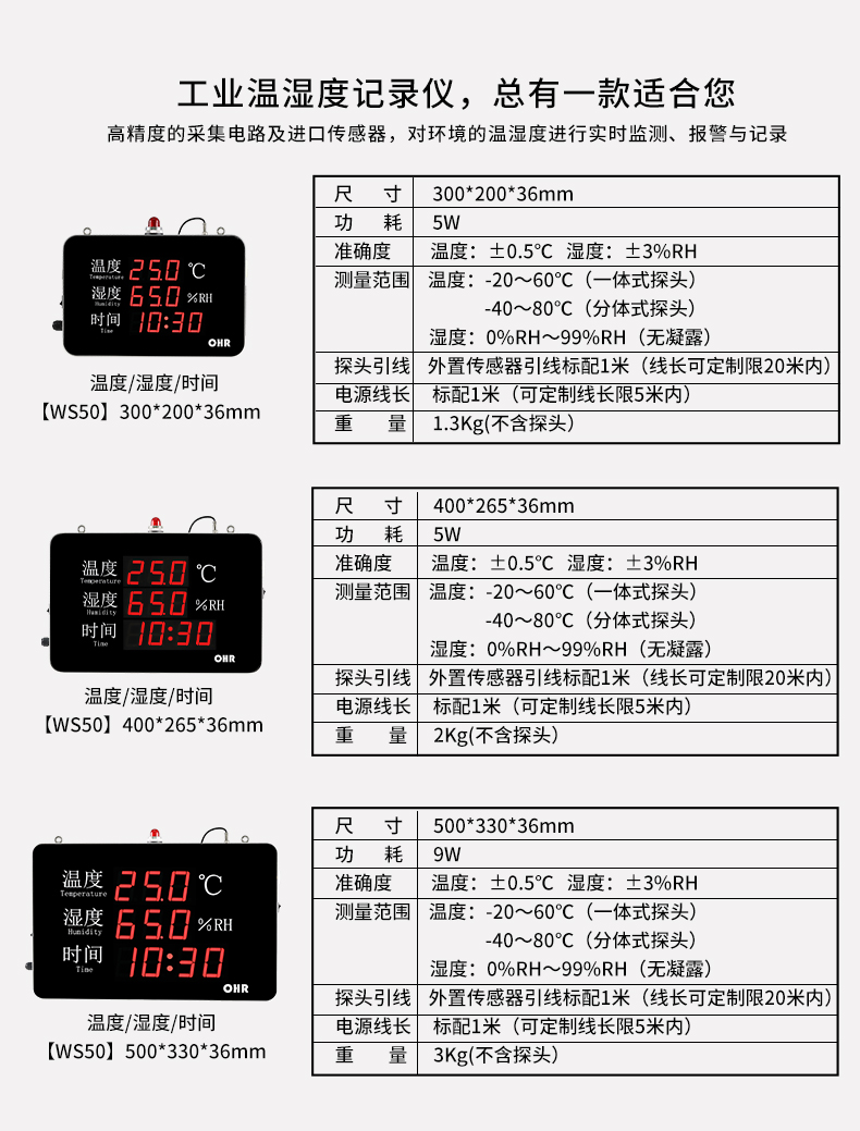 OHR-WS50/51/52/53系列大屏幕溫濕度記錄儀