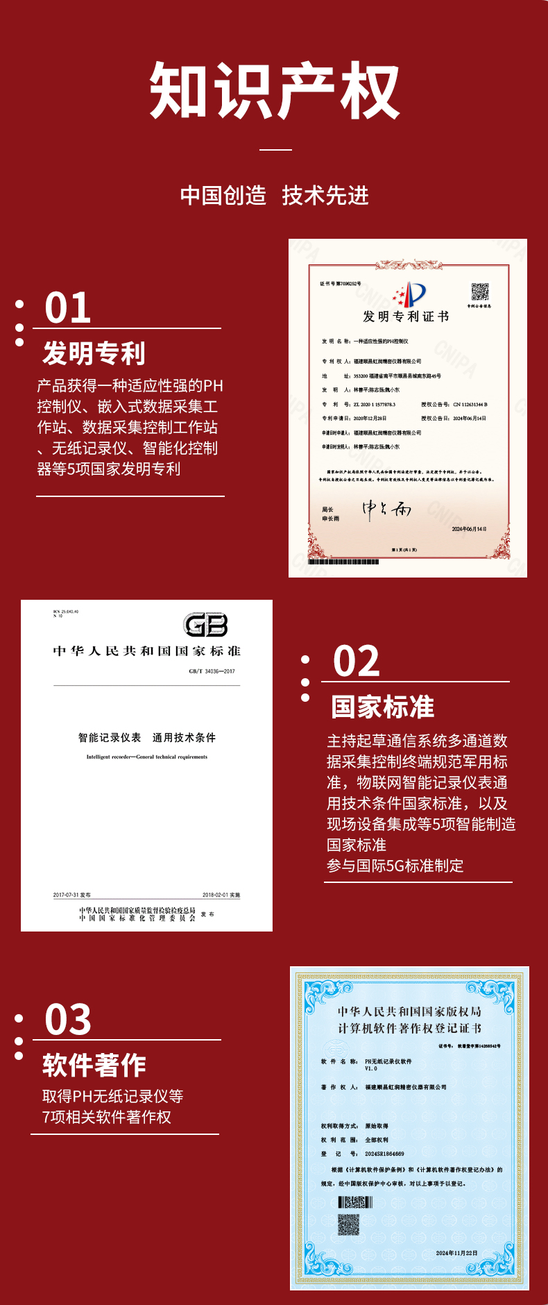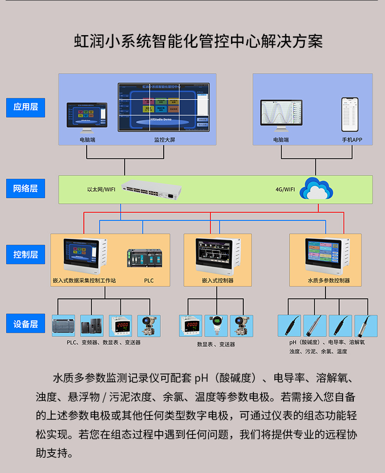 虹潤公司是專業(yè)生產(chǎn)水質分析儀的國家專精特新“小巨人”企業(yè)。生產(chǎn)的水質多參數(shù)監(jiān)測記錄儀,具有多參數(shù)采集同屏顯示,數(shù)據(jù)記錄與轉存,支持WiFi或4G實現(xiàn)數(shù)據(jù)云方案,內(nèi)置與外配組態(tài)軟件等特點。產(chǎn)品獲得一種適應性強PH控制儀、嵌入式數(shù)據(jù)采集工作站、數(shù)據(jù)采集控制工作站、無紙記錄儀、智能化控制器等5項國家發(fā)明專利;主持起草通信系統(tǒng)多通道數(shù)據(jù)采集控制終端規(guī)范軍用標準,物聯(lián)網(wǎng)智能記錄儀表通用技術條件國家標準,以及現(xiàn)場設備集成等5項智能制造國家標準,參與國際5G標準制定;取得PH無紙記錄儀等7項相關軟件著作權。產(chǎn)品廣泛應用于實驗室、水處理、環(huán)境監(jiān)測、食品、制藥、農(nóng)業(yè)、工業(yè)流程控制等諸多領域。