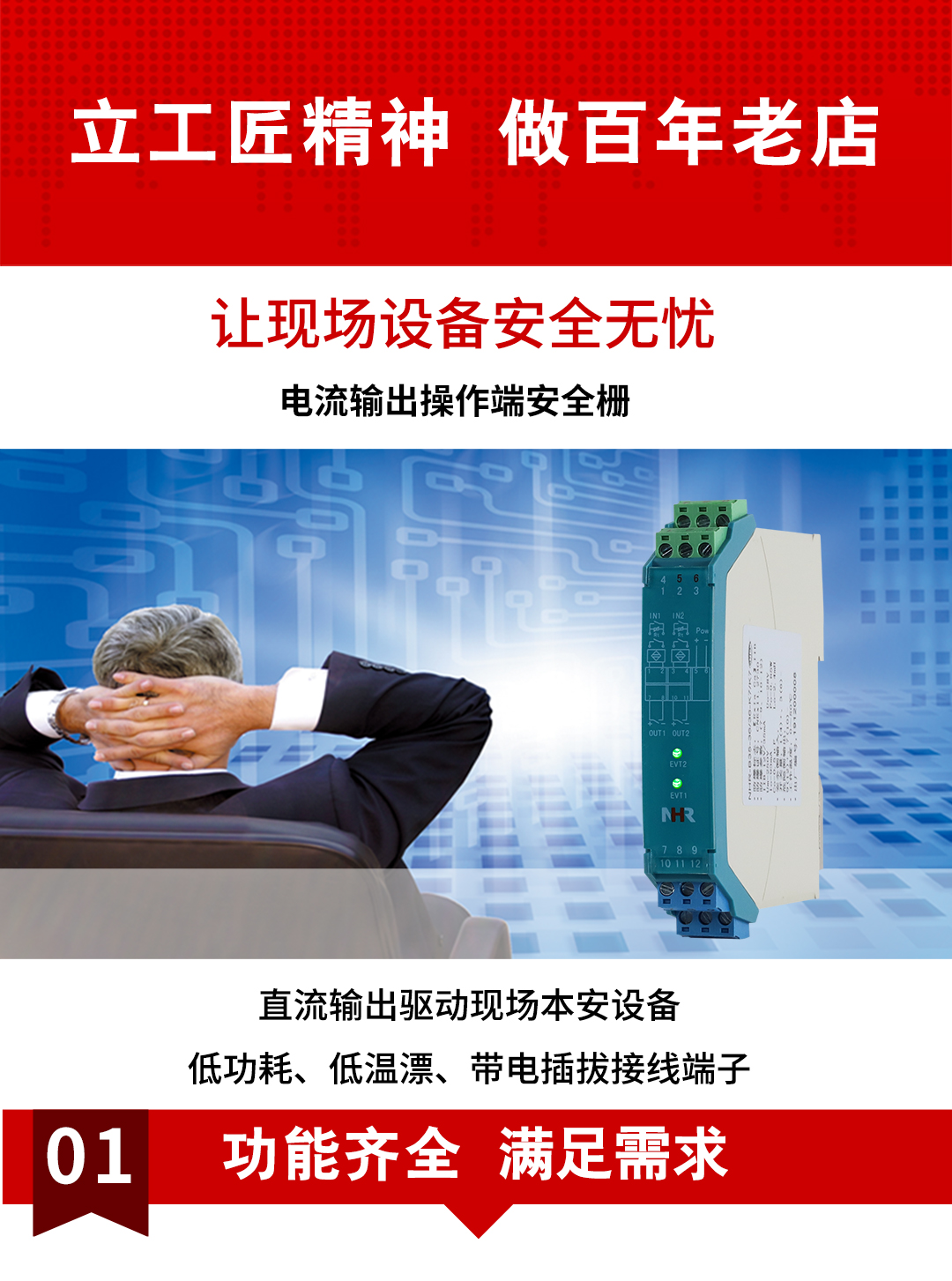 虹潤公司是專業(yè)生產(chǎn)隔離器的國家專精特新“小巨人”企業(yè)。生產(chǎn)的電壓/電流輸出操作端隔離柵涵蓋信號電壓輸入、電流輸入、開關(guān)量輸入等多種產(chǎn)品類型。產(chǎn)品獲得具備減震抗干擾能力的溫度變送器、信號隔離器、一種二端子模塊、無源信號隔離器等4項國家發(fā)明專利,主持起草物聯(lián)網(wǎng)智能溫度儀表、現(xiàn)場設(shè)備工具(FDT)接口規(guī)范、工業(yè)過程測量和控制系統(tǒng)用溫度變送器等3項國家標(biāo)準(zhǔn),以及通信系統(tǒng)多通道數(shù)據(jù)采集控制終端規(guī)范軍用標(biāo)準(zhǔn)。參與國際5G標(biāo)準(zhǔn)制定,取得智能隔離式安全柵等4項相關(guān)軟件著作權(quán)。產(chǎn)品廣泛應(yīng)用于石油、電力、化工,冶金、智能制造、污水處理等諸多行業(yè)。